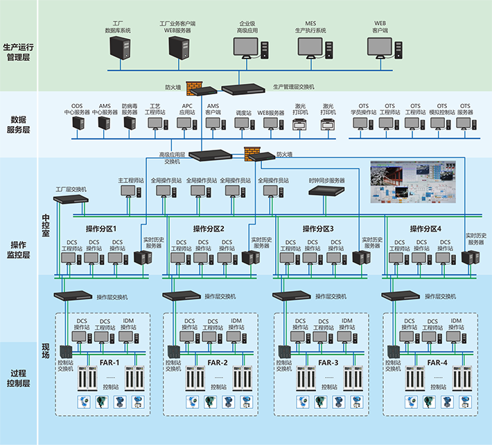 实现生产流程监视、生产过程控制、生产设备维护、设备故障诊断和紧急事故处理;
